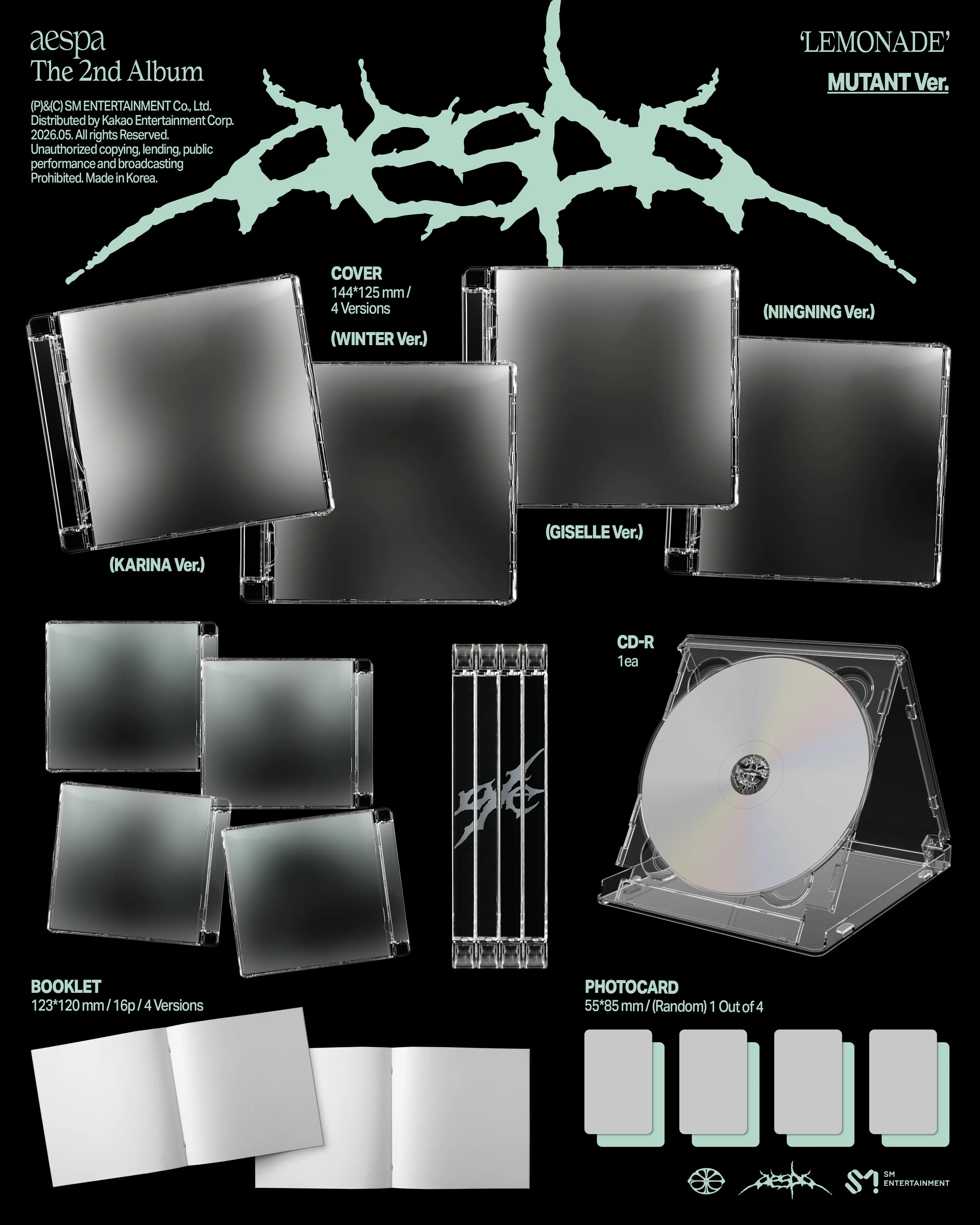 aespa - 2nd Album [LEMONADE] (MUTANT Ver.) FECHA DE LANZAMIENTO EN COREA: 29-05-2026 FECHA DE LLEGADA: DE 3 A 6 SEMANAS DESPUÉS DEL LANZAMIENTO PRECIO FINAL, INCLUYE ENVIO A CHILE Y ADUANA. CONTENIDO: